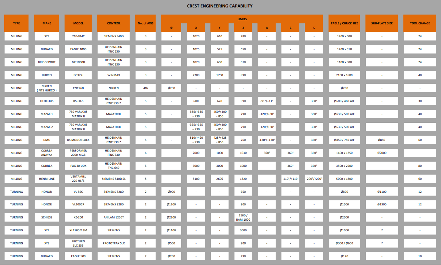 Crest Engineering can offer up to 1600 manufacturing hours per week across our wide range of CNC turning and milling machine centres.